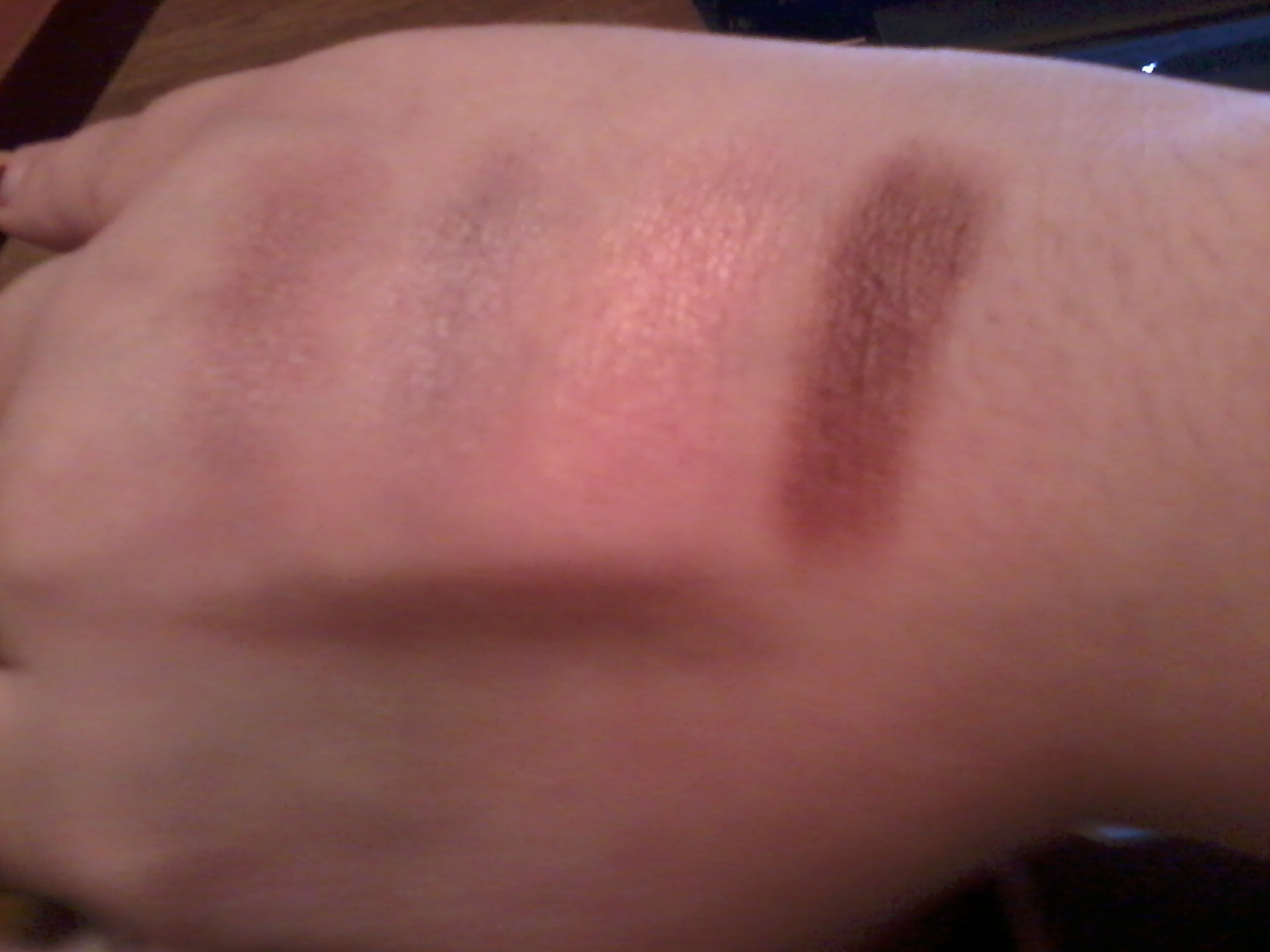 From left to right we have Burnished Gold, Champagne, and Rose Mist. I wear the Burnished Gold the most.